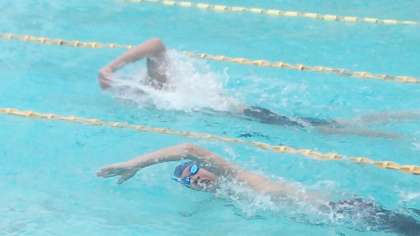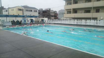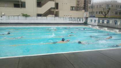 5月9日(土)午後、日が陰り、肌寒く感じる中で、水泳部の子どもたちは1700m〜2100mの距離を泳ぎました。自己ベストの更新を目指して、頑張れ!