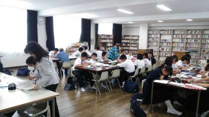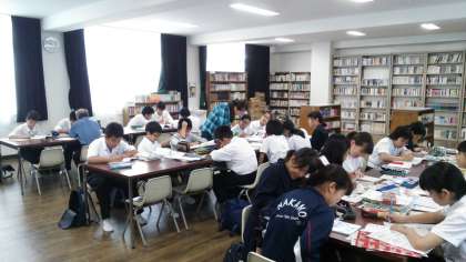 5月10日(日)午前9時30分〜午前11時30分の2時間、図書室で中間テスト前元気アップ学習会を行いました。子どもたちはボランティアの方々から教えていただきながら熱心に勉強をしていました。「分かることは楽しい」、みんな、テスト勉強を頑張れ!