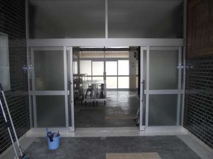 7月末より行われていました玄関の改築工事が8月30日(金)に完成しました。扉が開き戸からスライド式の扉に変わりました。ぜひ、リニュアルしました中野中学校の玄関を見に来てください。