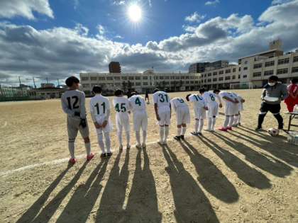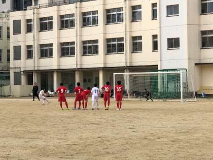 十三中学校で午前中にガンバカップ予選、午後からフレッシュリーグ後期の試合に挑みました。数的不利の中、ガンバカップでは先制をされるもPKで同点に追いつくことができ引き分けました。