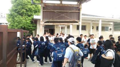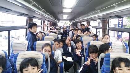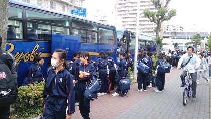 部活動に来ている2・3年生、1年生の保護者が見送られながら、子どもたち208人がバスに乗車して予定通り出発しました。