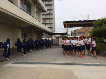 一泊移住に出発する1年生を陸上競技部、男子バスケ部、少林寺拳法部、ラグビー部で送り出しました!気を付けて、いってらっしゃい!!