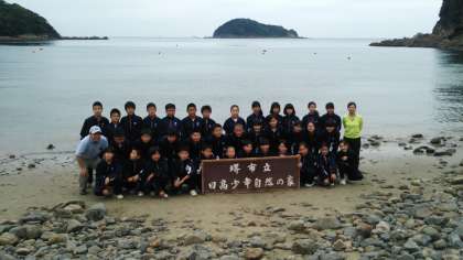 海を背景に集合写真をとりました♪