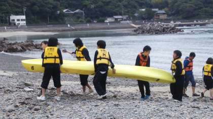 海活動が終了しました。子どもたちはカヌー・カヤックを片付けています。次は入浴に、晩ご飯だ♪