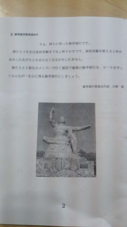 事前指導を受けました。修学旅行は236名の