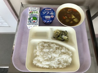 牛肉と大豆のカレーライス・キャベツのひじきドレッシング・ヨーグルト・ごはん・牛乳