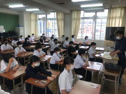 1年1組2組の社会のテスト前の様子です