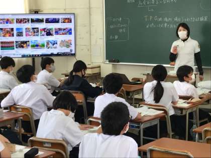 1年1組の家庭科、1年2組の教育実習生担当の英語です