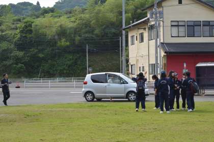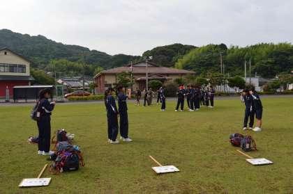 修学旅行2日目、各民家の方々から送られて、集合場所に続々と集まっております。