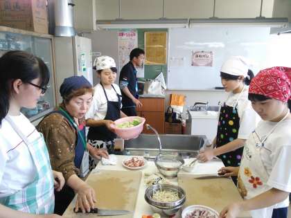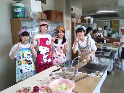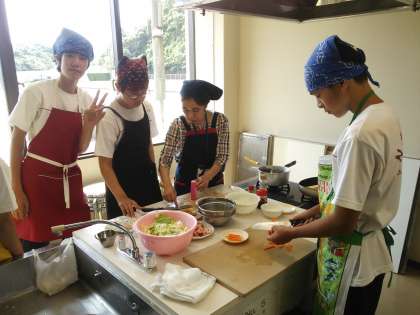 午後の体験プログラムでチャンポン作りを教わっています。