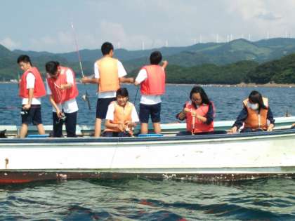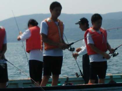 船で沖まで出て、釣りを教わっています。たくさん釣れましたか?