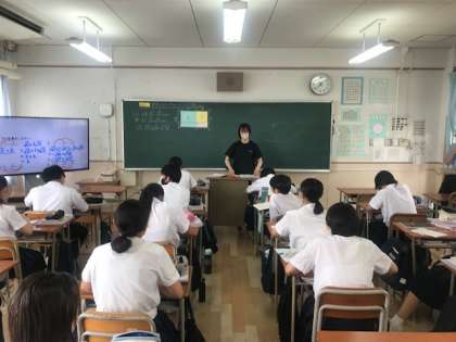 教育センターから講師の先生を招いての、3年4組、数学の習熟度別少人数形式の研究授業です