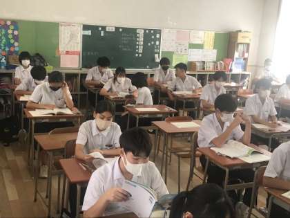 1時間目、国語のテスト前の様子です。国社数理英の順で行われる予定です。