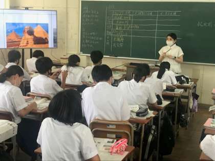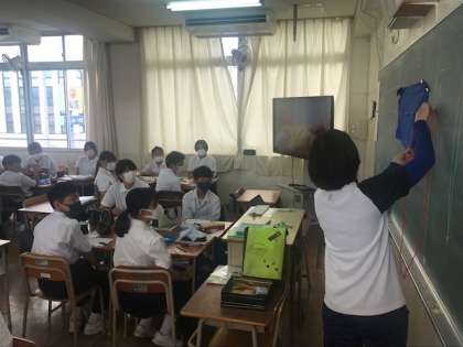 2年4組の英語、1年1組の社会、1年2組の家庭科です