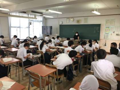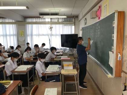 3年1組の国語、2組の社会、4組の数学です。昨日の実力テストの返却・解説をおこなっています。