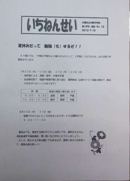 1年生学年通信「いちねんせい No.13 7/10」は