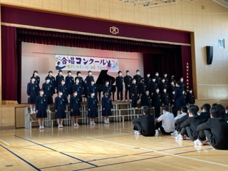3年生は中学校入学時からコロナの影響を大きく受けた学年で、中学校生活の中で合唱の練習も3年生になってはじめて本格的に行うことができました。そんな3年生が『短期間の練習』且つ『マスク合唱』という状況の中でも、楽しく切磋琢磨しながら当日を迎えることができました。