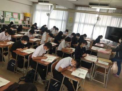 1・2時間目で、READING/WRITING/LISTENINGのテストを行っています