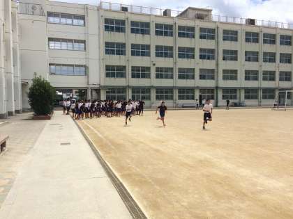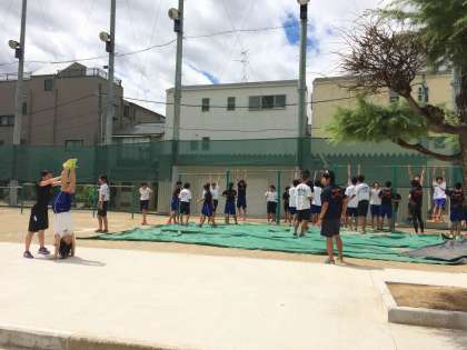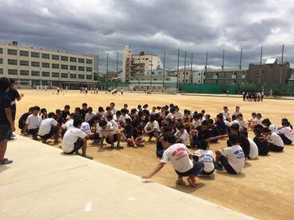 本日は中野中学校において、羽曳野の誉田中学校と合同練習です。