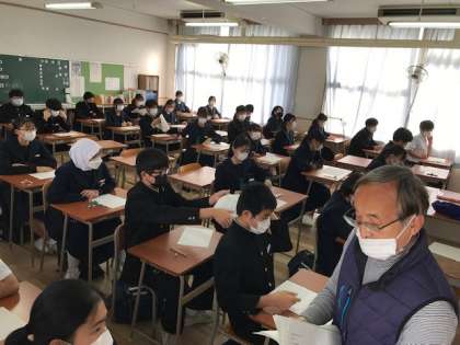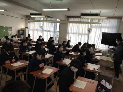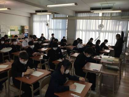 1時間目音楽のテスト前、3年生の様子です