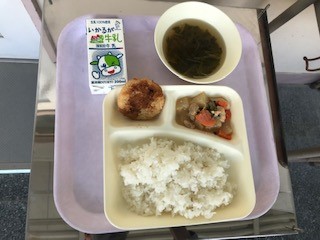鶏肉の土手焼き風・はりはり汁・れんこんのフライ大阪ソース味・ごはん・牛乳