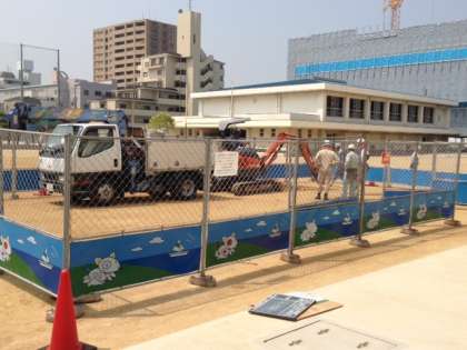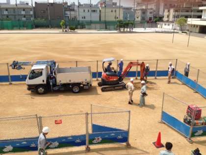 8月3日(月)より、グラウンドの北側で飲料水兼用耐震性貯水槽関連工事が始まりました。予定では8月10日(月)までの間、工事を行います。震災はいつ来るかわかりません。非常時に備えて工事を行っています。