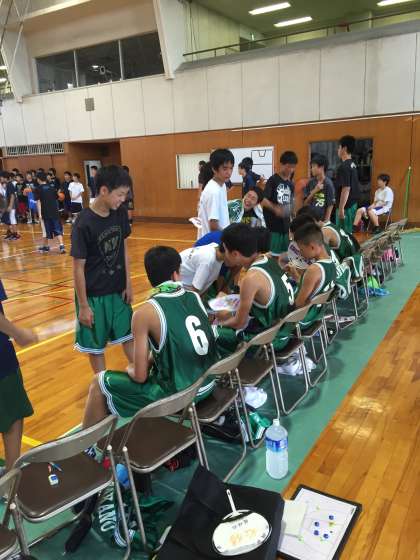 2回戦は矢田中学校と対戦。勝てばベスト4というプレッシャーか、開始直後は0-8という苦しい立ち上がり。しかし、徐々に落ち着きを取り戻し、72-50で勝利。次は加美中学校に挑戦です。保護者の皆様、暑い中応援ありがとうございます。