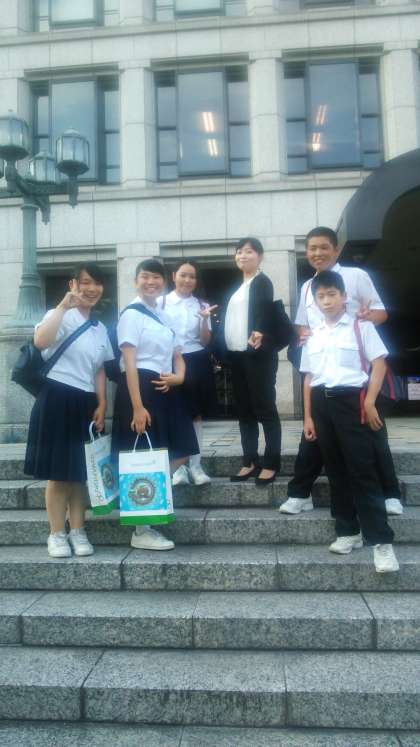 生徒会メンバー 市役所前で