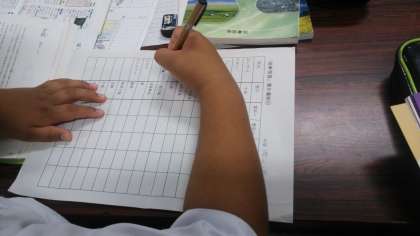 8月21日(金)、元気アップ学習会「宿題やりきり隊」も最終日です。今日は17名の子どもたちが3名のボランティアのみなさんや、中山先生、福島幸子先生などに教えてもらいながら、宿題に取り組んでいました。