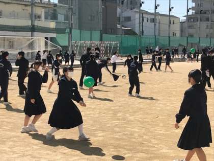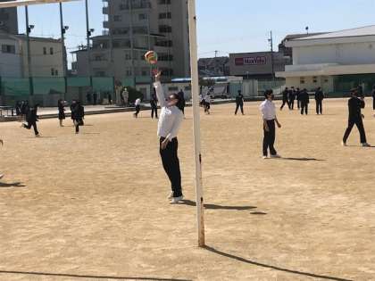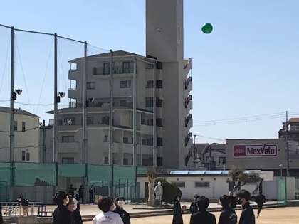 ぽかぽか陽気のもと、多くの生徒がグランドに出てきて、ボールを使って遊んでいます