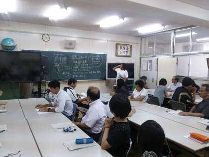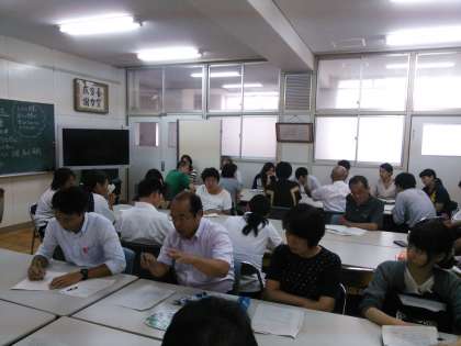 全教員で、庄内教諭・徳留教諭・神原教諭の研究協議を行なっています。