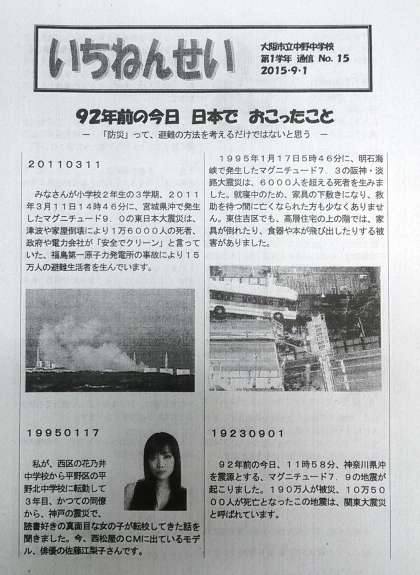 1年生 学年通信を発行しています。