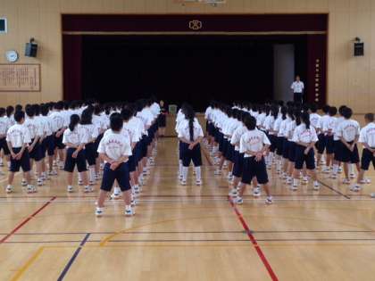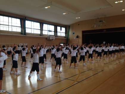 学年練習は雨で中心になりましたが体育館で体育大会の練習を行いました。