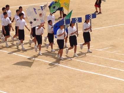 3・4時間目は1年生が学年練習を行いました。入場行進と開会式の流れとラジオ体操の練習をしました。