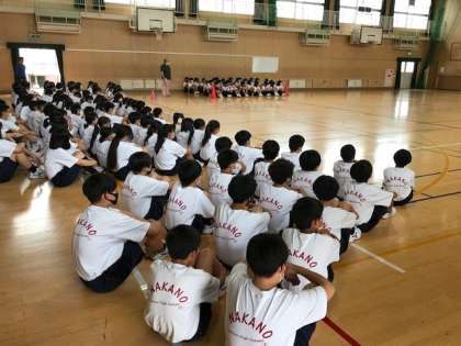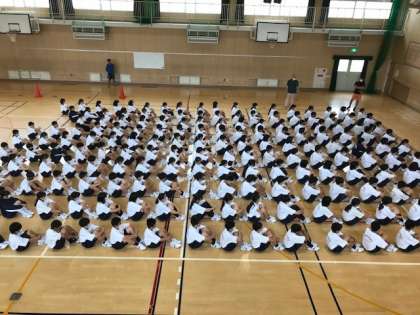 1年生の練習も始まりました。グランドではなく体育館ですが