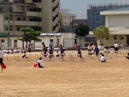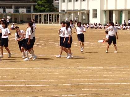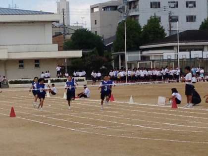 9月18日(金)の3時間目から予行を行いました。暑い中、子どもたちは自分の競技の順番を確認をしたり、試走して当日に向けて準備をしました。