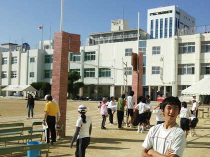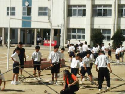 先週とは打って変わって強い日差しの中、明日の体育大会の準備をしています。
