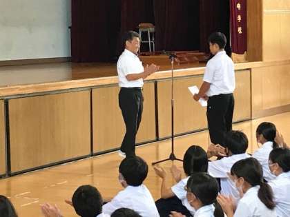 式前にラグビー部の表彰が行われました。明日から約1か月間の夏休みがいよいよ始まります。