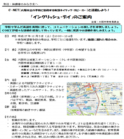活動する、大阪市主催イングリッシュ・デイが開催されます。
