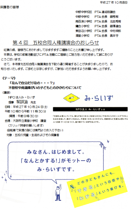 10月24日(土)五校合同人権講演会のお知らせ(再掲)です