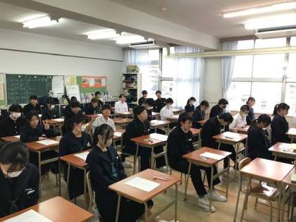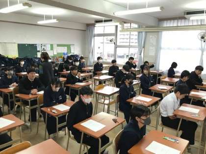 1時間目の理科のテスト前の様子です。今日は理社国数英の時間割でテストが行われます