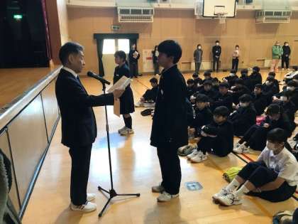 終業式にて、税の作文の賞状伝達が行われました