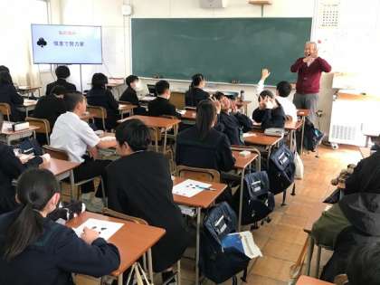 本日1年生は各クラス、SPトランプを使っての出前授業を行っています