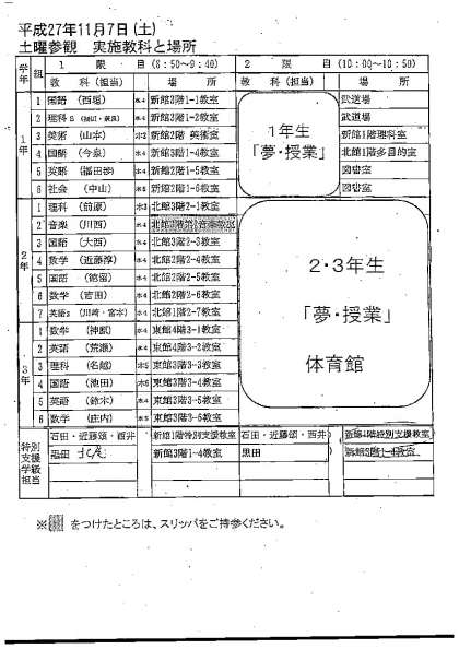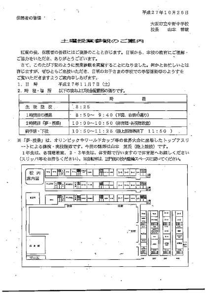 11月7日(土)・土曜授業参観&『夢★授業』を行います。(再掲です)