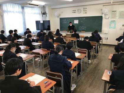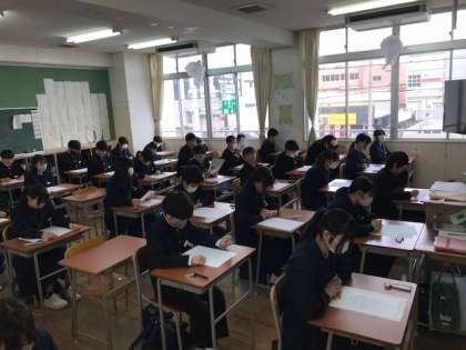 2年3組と1年3組の1時間目、社会のテスト前の様子です