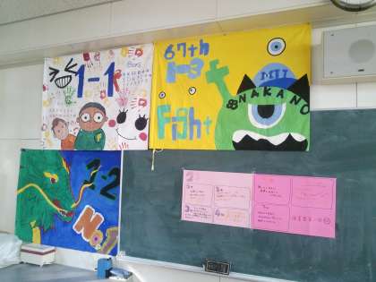体育大会でも大活躍しました、クラスのシンボル学級旗です。