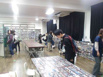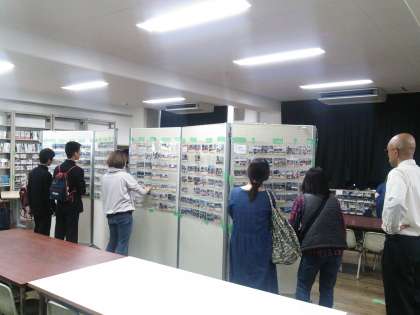 広報さんが、体育大会での写真を展示、子どもたちも見入っていました。