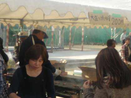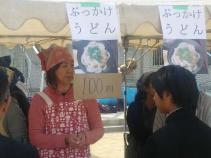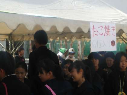ラグビー部さんはぶっかけうどん&コーヒー、水泳部さんはたこ焼き、南百済ソフトさんは焼きそばを販売しています。