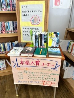 図書室では『本屋大賞コーナー』を作っています。今年の大賞を取った本ももちろんありますよ。是非見に来てくださいね!