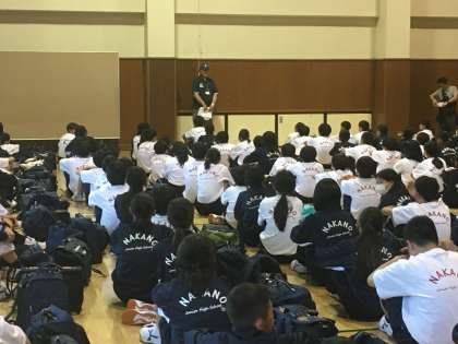 予定より少し遅れての入館式の様子です